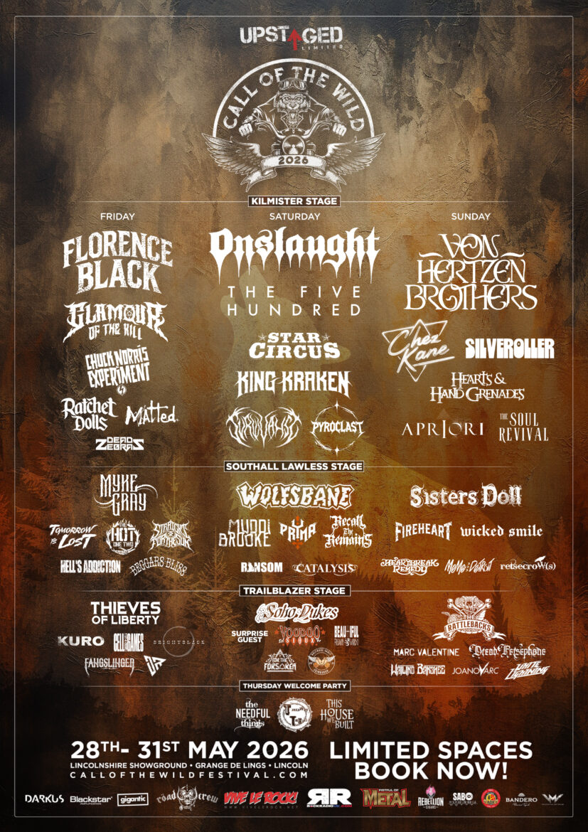 CALL OF THE WILD FESTIVAL EXPANDS ITS 2026 LINE-UP WITH A FRESH WAVE OF ROCK AND METAL TALENT Call Of The Wild Festival returns to Lincolnshire Showground from 28th – 31st May 2026, and the momentum behind this year’s event shows no signs of slowing down. With headliners Florence Black, Onslaught, and Von Hertzen Brothers already anchoring the weekend with three distinct, high impact headline sets, organisers have now […]